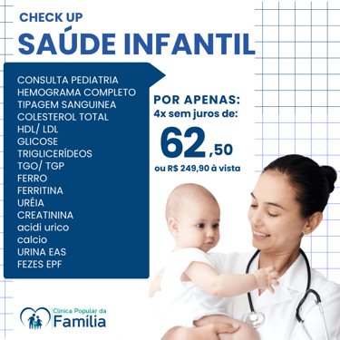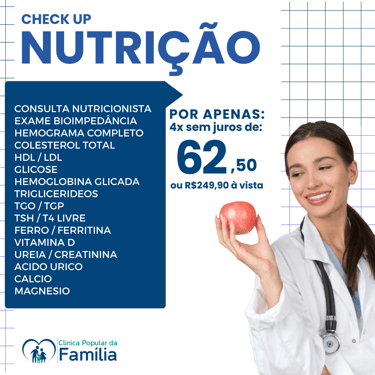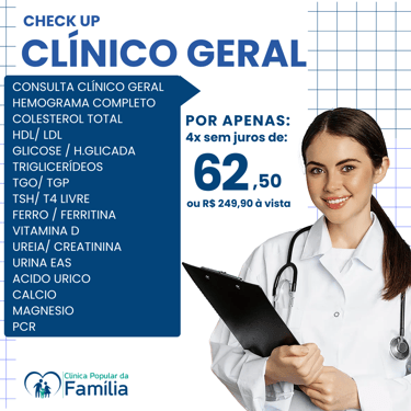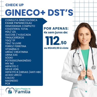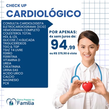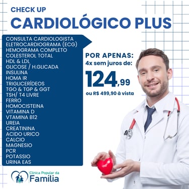 Não perca a chance de realizar seu check-Up completo com preço super acessível e facilidade no pagamento, selecione o pacote ideal para você e sua família, agende diretamente pelo WhatsApp